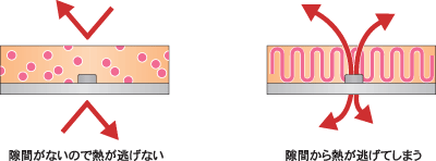 断熱材の場合、熱を伝えるのは空気。空気が移動しなければ熱は伝わりません。