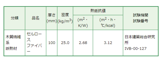 セルローズファイバーの透湿係数=0.73g/㎡hmmHg (厚さ100mm)